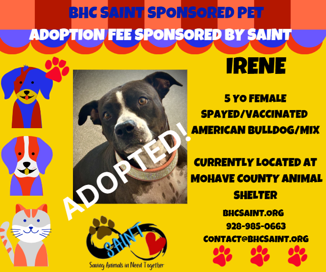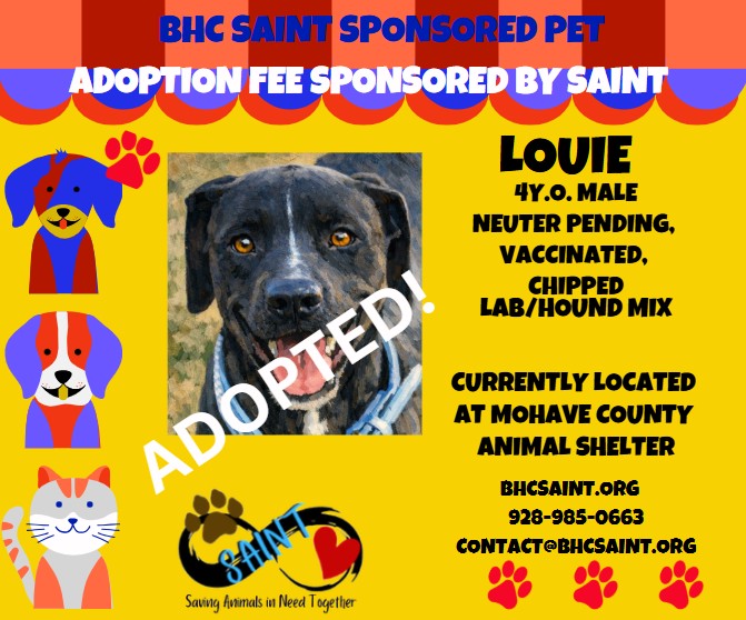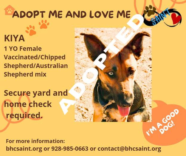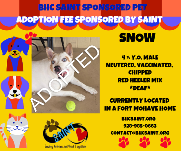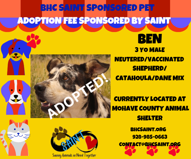 Please call 928-985-0663 or email adoption@bhcsaint.org